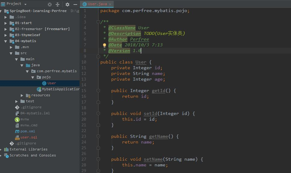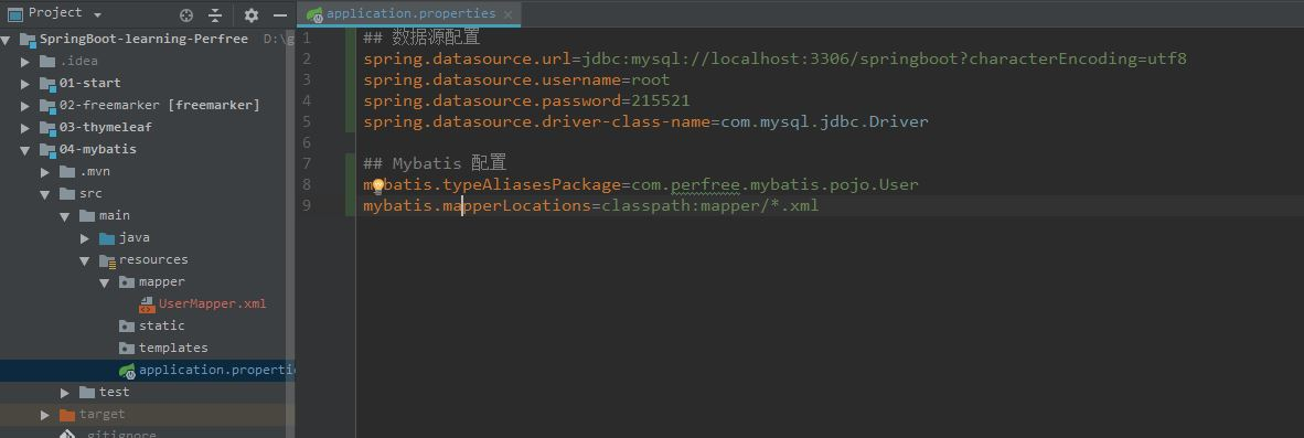 mybatis.typeAliasesPackage=com.perfree.mybatis.pojo.User